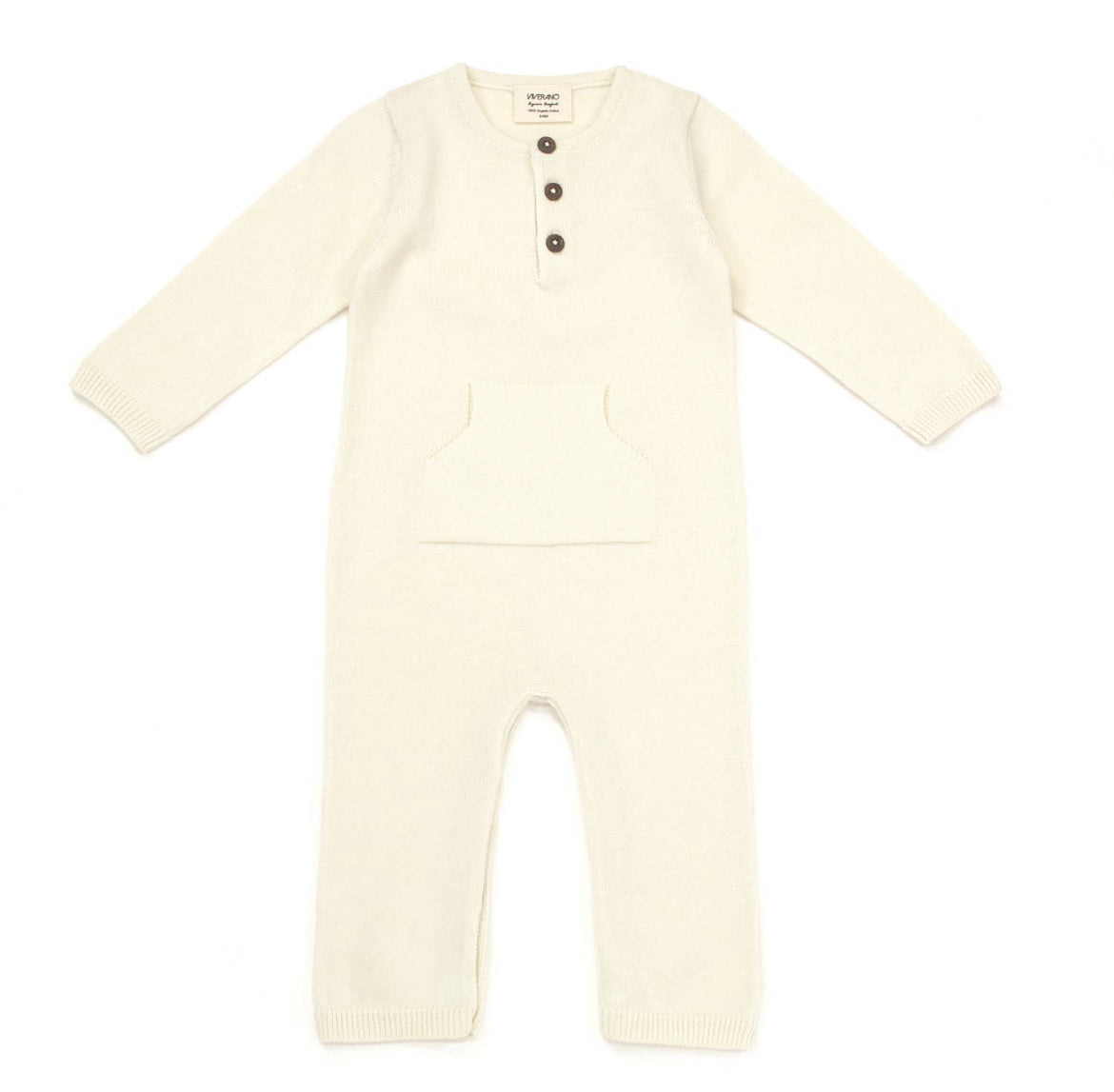 This 100% organic cotton sweater knit coverall romper has cashmere like softness and features an adorable kangaroo pocket in front. Coconut shell buttons in front, stylish, functional & sustainable.
