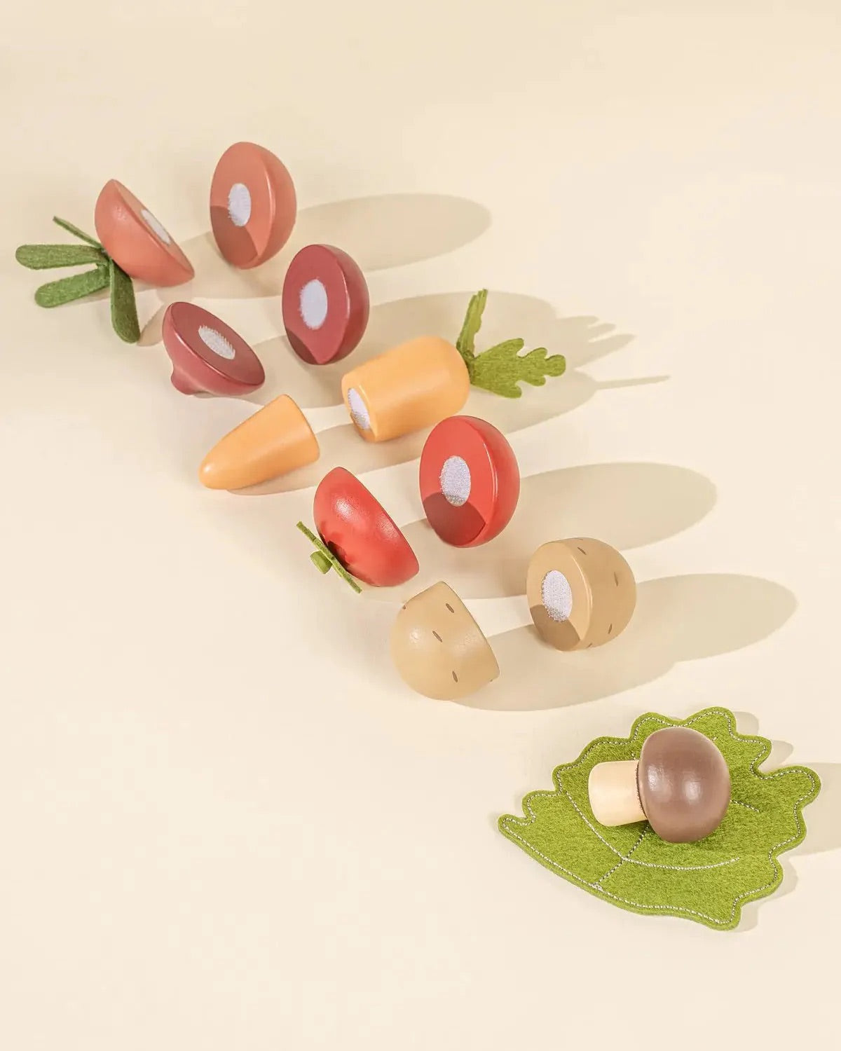 This selection of 7 colorful veggies are a great addition to our wooden Mini-market or Kitchen*. Plus, they are sliceable and come with the cutest wooden knife.