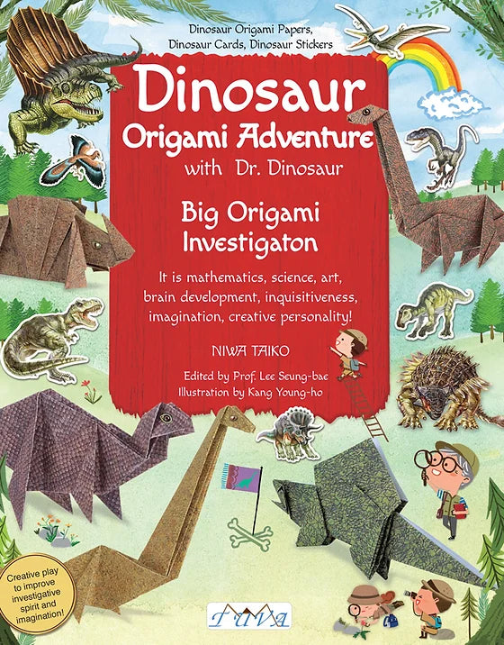 Dinosaur Origami Papers, Dinosaur Cards, Dinosaur Stickers Through the maths, art, and science that is origami, along with a great experience of dinosaurs, improve your mind, inquisitiveness, imagination, and creativity! With a teacher or parent, children with an interest in dinosaurs can find out more about the times that dinosaurs lived in through realistic dinosaur pictures and research information. With "Dinosaur Pattern Origami Papers," you can fold dinosaurs around the world, and bring them to life with our "Dinosaur Research Stickers!" Through the "Big Dinosaur Investigation Cards," enjoy a fun game pitting your dinosaurs' attack, defence, and diet strength against your friends.