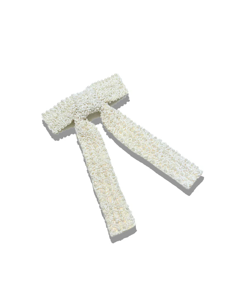 Embellished Hair Bow Barrette Clip | Hand-Stitched