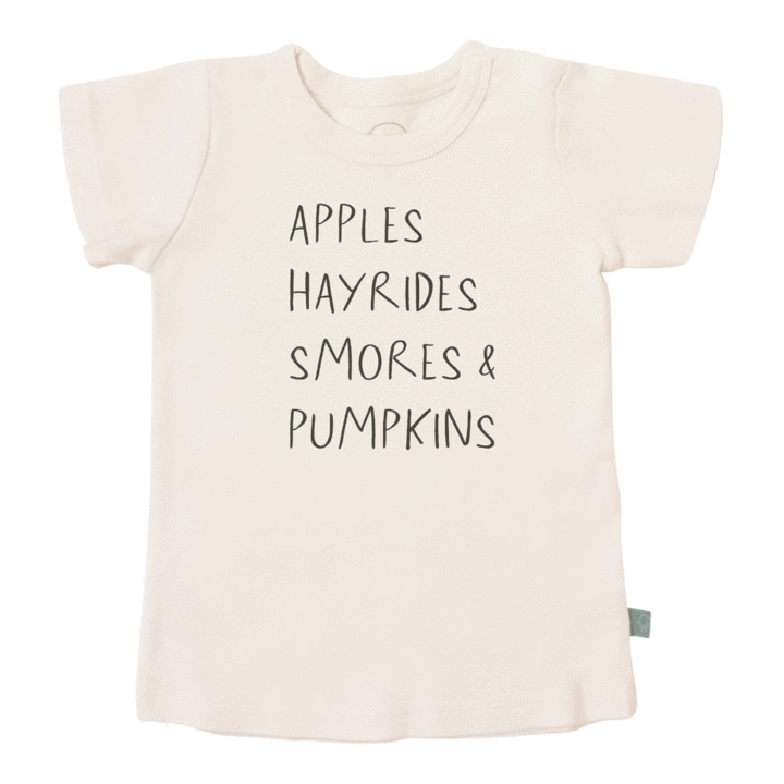 Celebrate cozy autumn moments with the Finn + Emma graphic tee featuring charming illustrations of apples, hayrides, and s’mores. Crafted for comfort and style, this tee captures the essence of fall adventures, making it perfect for your little one’s seasonal wardrobe. Its soft fabric ensures all-day wearability, while the playful design sparks imagination and joy. Ideal for family outings or casual days, this tee blends quality with festive spirit effortlessly.