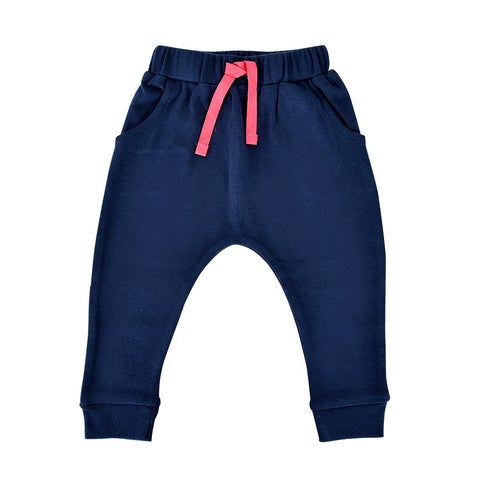 Let your little one strut their stuff in our adorable midnight navy lounge pants. Easy to pull on and off, they're made from buttery-soft organic cotton and are perfect for getting cozy on chilly fall nights! Plus, they have a generous fit to accommodate both cloth and disposable diapers.
