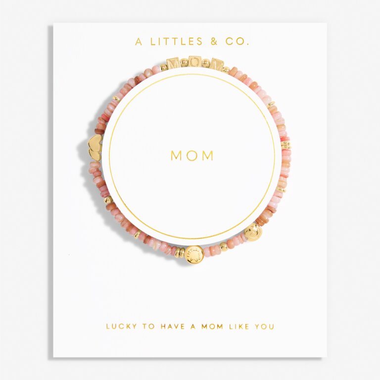 With its colorful natural shells, alphabet beads, and charms as well as sentiment-stamped card backing, our Happy Little Moments 'Mom' Bracelet In Gold-Tone Plating radiates the happiest vibes. A fun, fresh take on friendship bracelets just in time for summer, this style is the ultimate stacking piece and perfect for 'just-because' gifting.