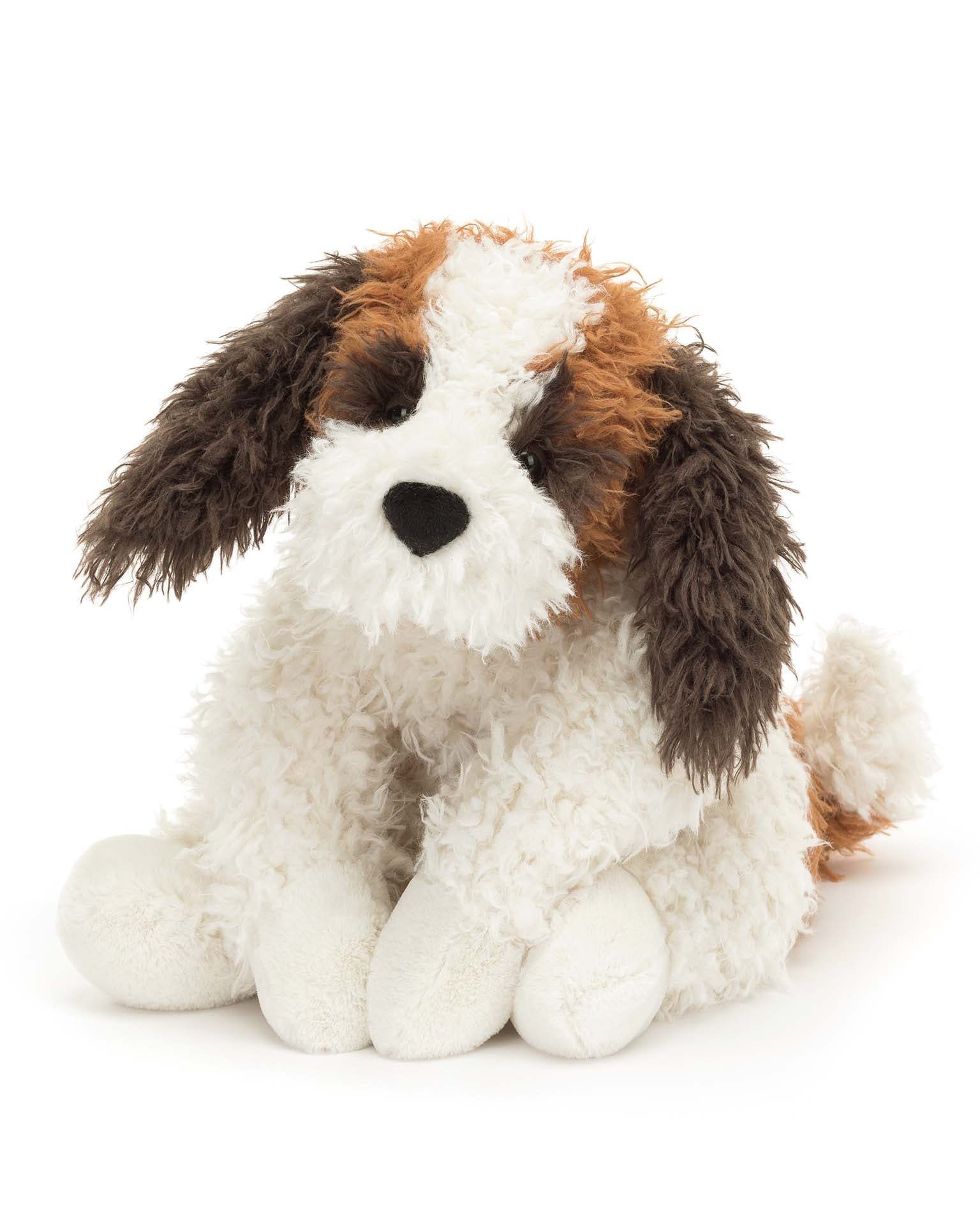 After a strenuous stroll down the mountain path, Floofie St Bernard's ready to flop! From his scraggly and lanky body to his cocoa, ivory, and ginger patches, this dedicated pal has it all. His big, thumpy tail, tousled ears, and snowball paws make Floofie St Bernard simply too cute to pass up.