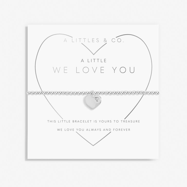 Match with your mini me with our adorable Kid's A Little Collection. This A Little 'We Love You' Bracelet makes for the perfect present for every little darling. Featuring silver-plated beads with a stretch design, this sweet style comes complete with a unique sparkling heart-shaped charm and is presented on a stylized card that's stamped with an adorable poem.