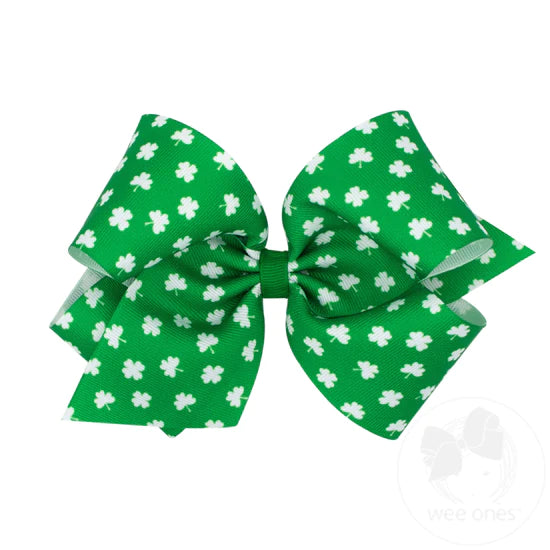 King Green Shamrock Print Grosgrain Girls Hair Bow