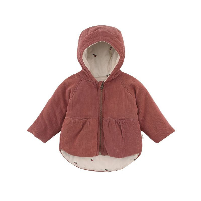 Snug and soft reversible jacket with a flared cut made in 100% organic cotton corduroy. Designed with zip closure, side pockets and elasticated cuffs.