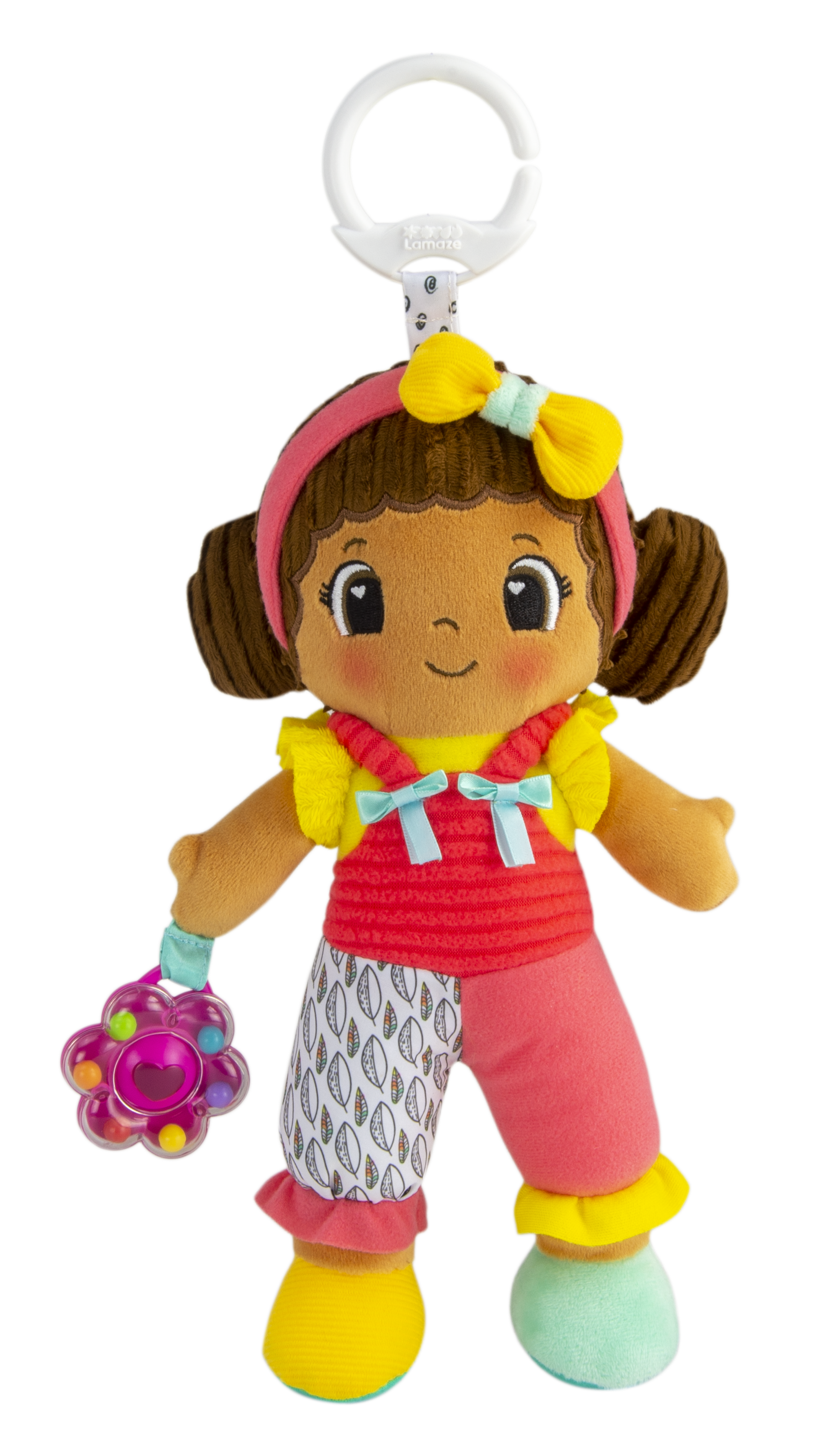 She's dressed in a cute pink romper with crinkly legs, plus she has so many fabric textures to explore, an embroidered face, and a rattle flower that's tethered to her hand to look like a cute purse. Meanwhile, use the large clip to attach her to a stroller, car seat, diaper bag, or anywhere! Sensory learning becomes a pretend-play adventure with the Lamaze My Friend Jasmine. Lamaze My Friend Jasmine Plush doll featuring sensory experiences for babies and toddlers Encourages sensory learning, fine motor skills, early imaginative play Legs feature crinkle material to engage the ears Rattle flower tethered to hand like a purse Bright colors engage the eyes Plenty of unique fabric textures to explore Clip for attaching to stroller, car seat, diaper bag, anywhere Includes one Jasmine doll Measures 6.5 x 3 x 11.5 inches High-quality materials and construction Ages 0+