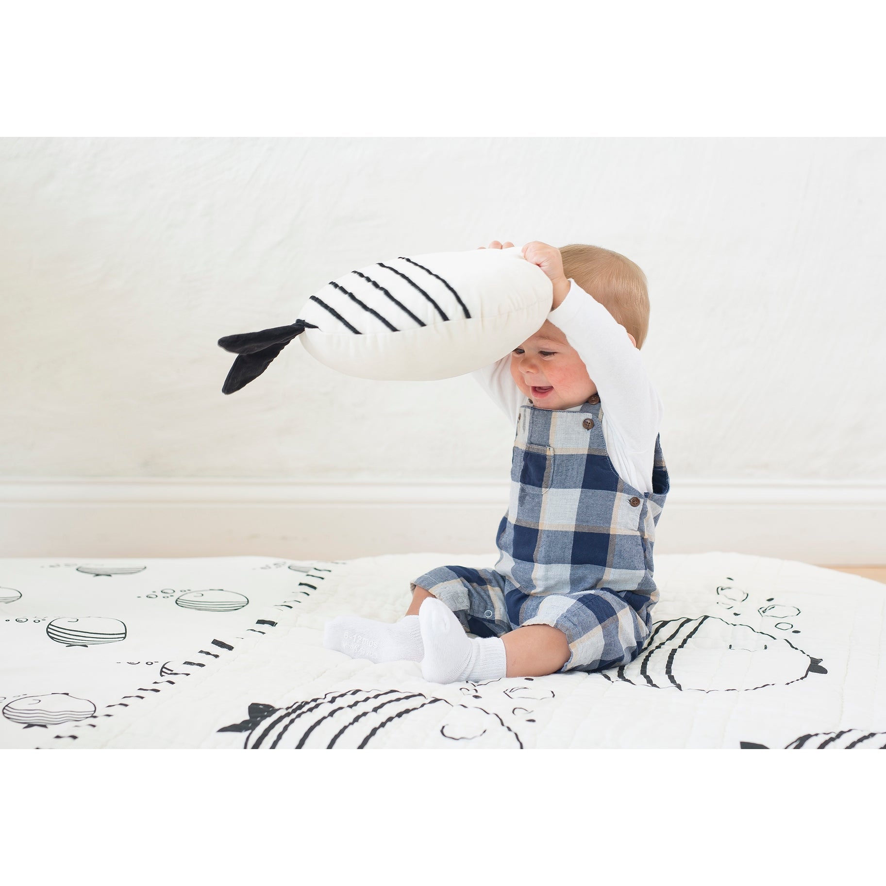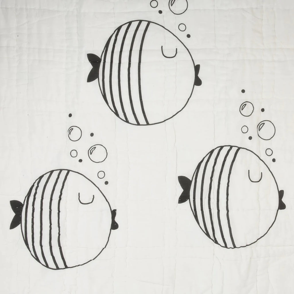 Lil Pyar Black & White Fish & Bubbles Reversible Baby Quilt