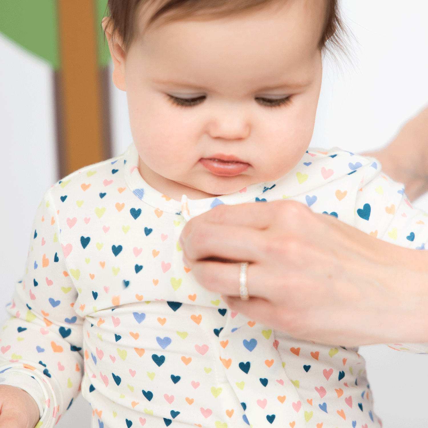 - magnetic closures: magnets line the seam from the neck to upper thigh for sizes up to 0-3m & from neck to crotch for sizes 3-6m and up.