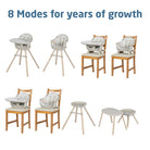 Moa is more than a high chair. Designed for your child from six months to five years old. Moa reconfigures eight ways to extend the longevity of a single grows-with-baby essential. As your little one develops, Moa adapts from a high chair to a booster seat, to a toddler stool, then a handy desk and seat—perfect for your child to eat, discover, play and grow.