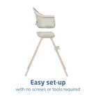 Mealtimes are messy, that’s why Moa is designed for easy clean-up. With a water-repellent machine-washable inlay, washable 5-point harness, and dishwasher-safe tray, your little one’s mealtime area is sure to stay as clean as you want it to be. Parents also love the simple set up: no need for screws or additional tools. Moa easily transforms to suit your child’s next stage of development.