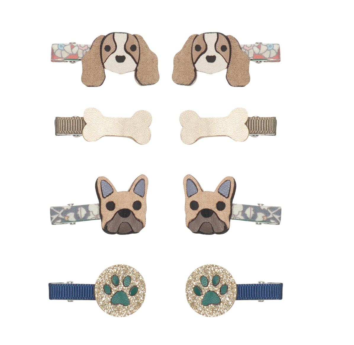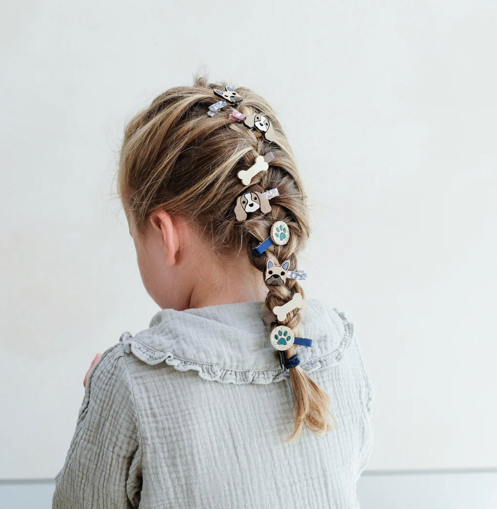 Paw-fect mini clips for little doggy fans! A seriously sweet pack of mini clips featuring two little French bulldogs and two little King Charles spaniels plus two tiny bones and two little paw prints to mix and match to their hearts content!