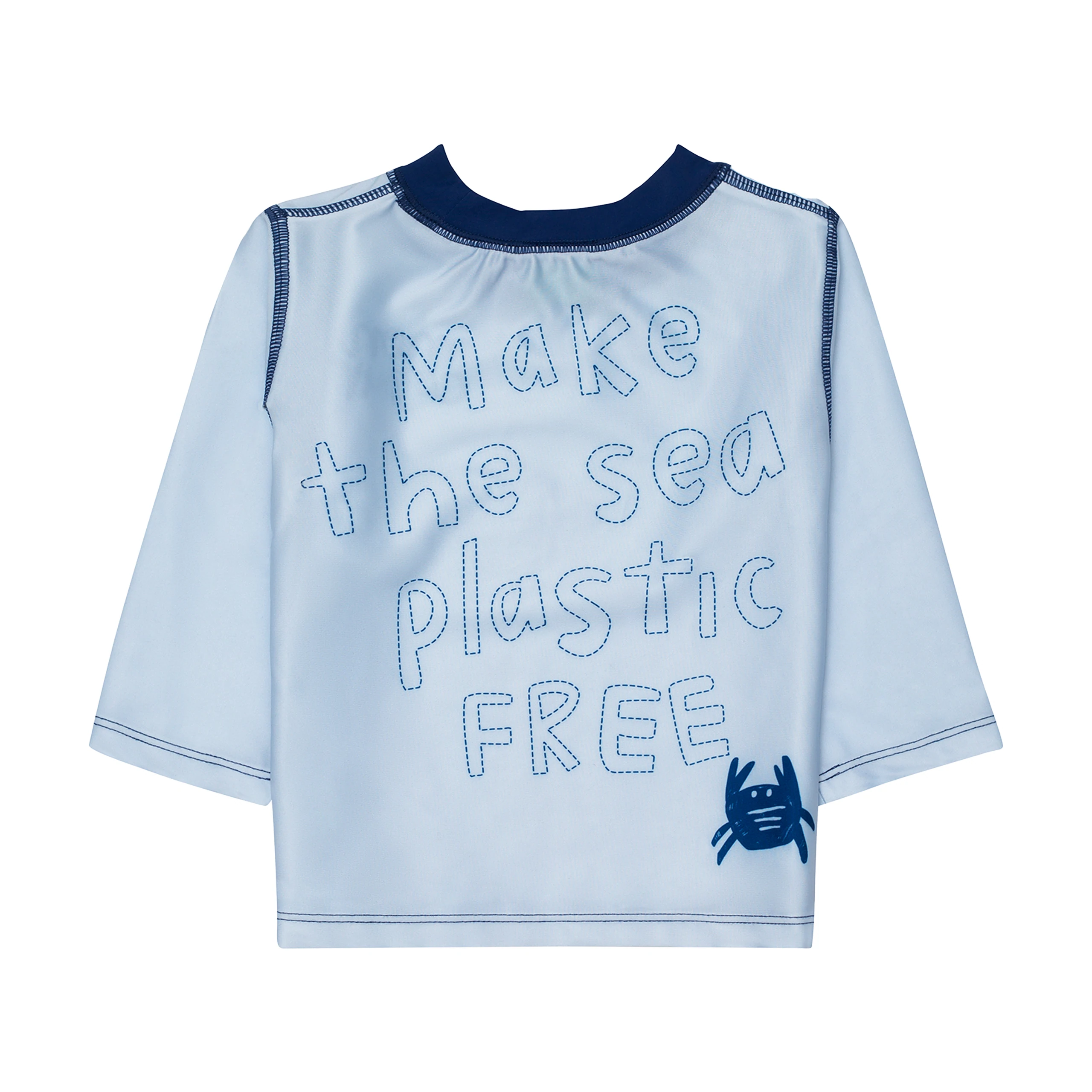 Beautiful, colorful, fun eco-designed collection made from 100% recycled European fabrics. Made from recycled plastic bottles. The drawstrings on the tops and bottoms are all adjustable to allow kids freedom of movement while being protected from the sun (UPF50).