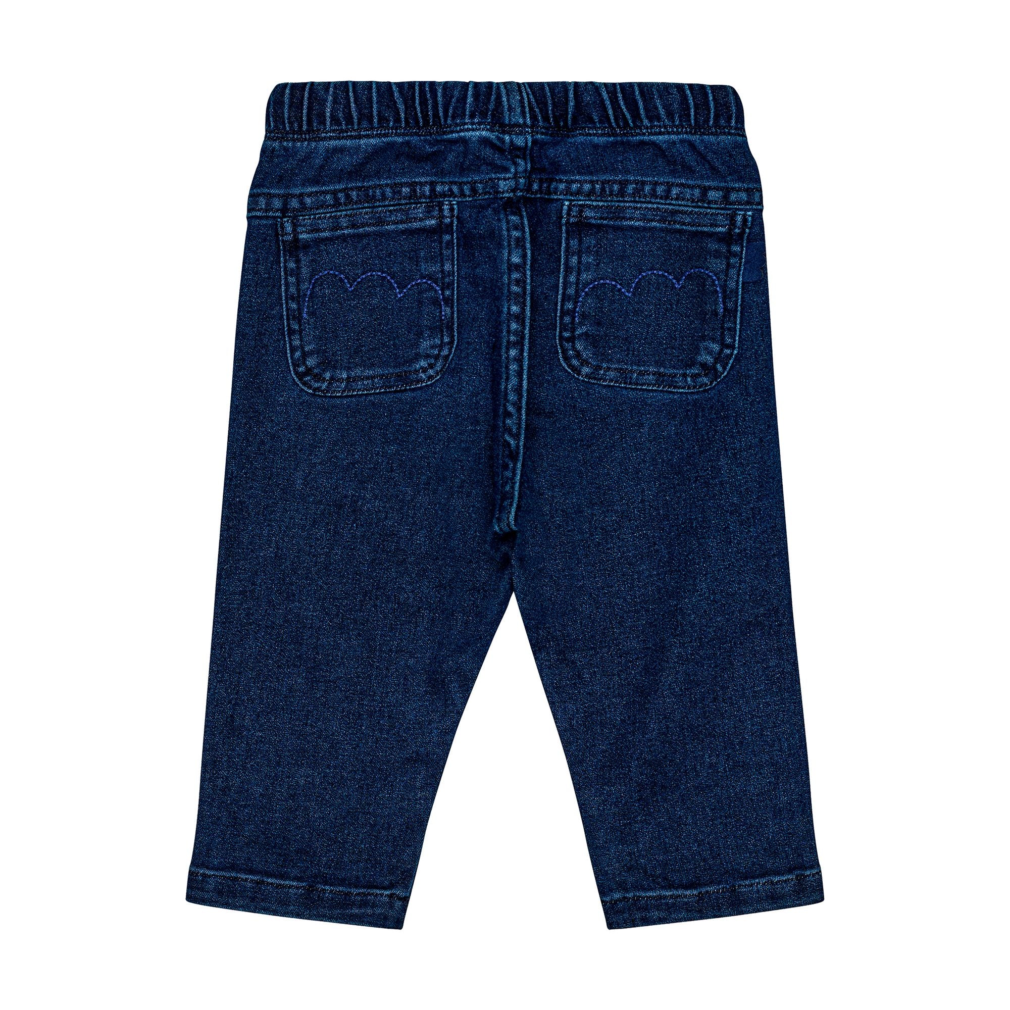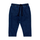 Baby Denim Pant in Medium Wash with elastic drawstring waist and double back pockets