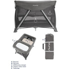 A unique zigzag leg design pops open easily into a soft, sturdy dreamland, and then refolds with just one hand for a quick getaway the next morning. Its revolutionary design is also evolutionary: growing beyond newborn through toddlerhood, and even doubling as a play space.