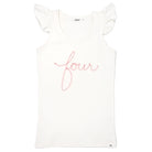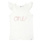 Celebrate her 1st Birthday in style. Appliqued "one" spelled out in pink and gold sparkle yarn on a tank top with flutter sleeves. Add a gorgeous tutu and matching crown for a complete look. Available in size 12-18 mo. Designed in Minnesota.