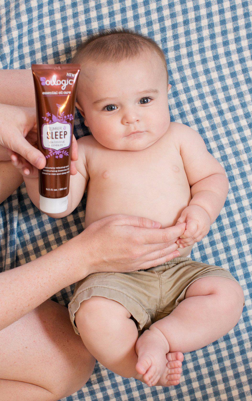 Gently rub Oilogic Slumber & Sleep Calming Cream all over your child’s body to moisturize baby-soft skin and calm the senses.