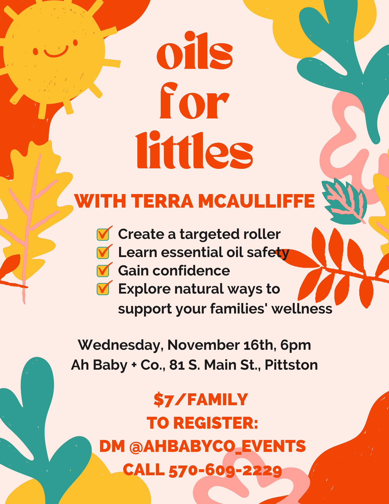 Come learn with Terra Mcaulliffe. She’ll walk you through how start using oils with your family especially those little ones.