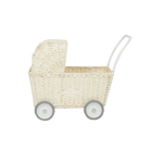 Strolley is a revolutionary design in imaginative play. This hand-woven rattan basket on wheels switches from a pram to a shopping trolley, by just lowering the hood of the pram.