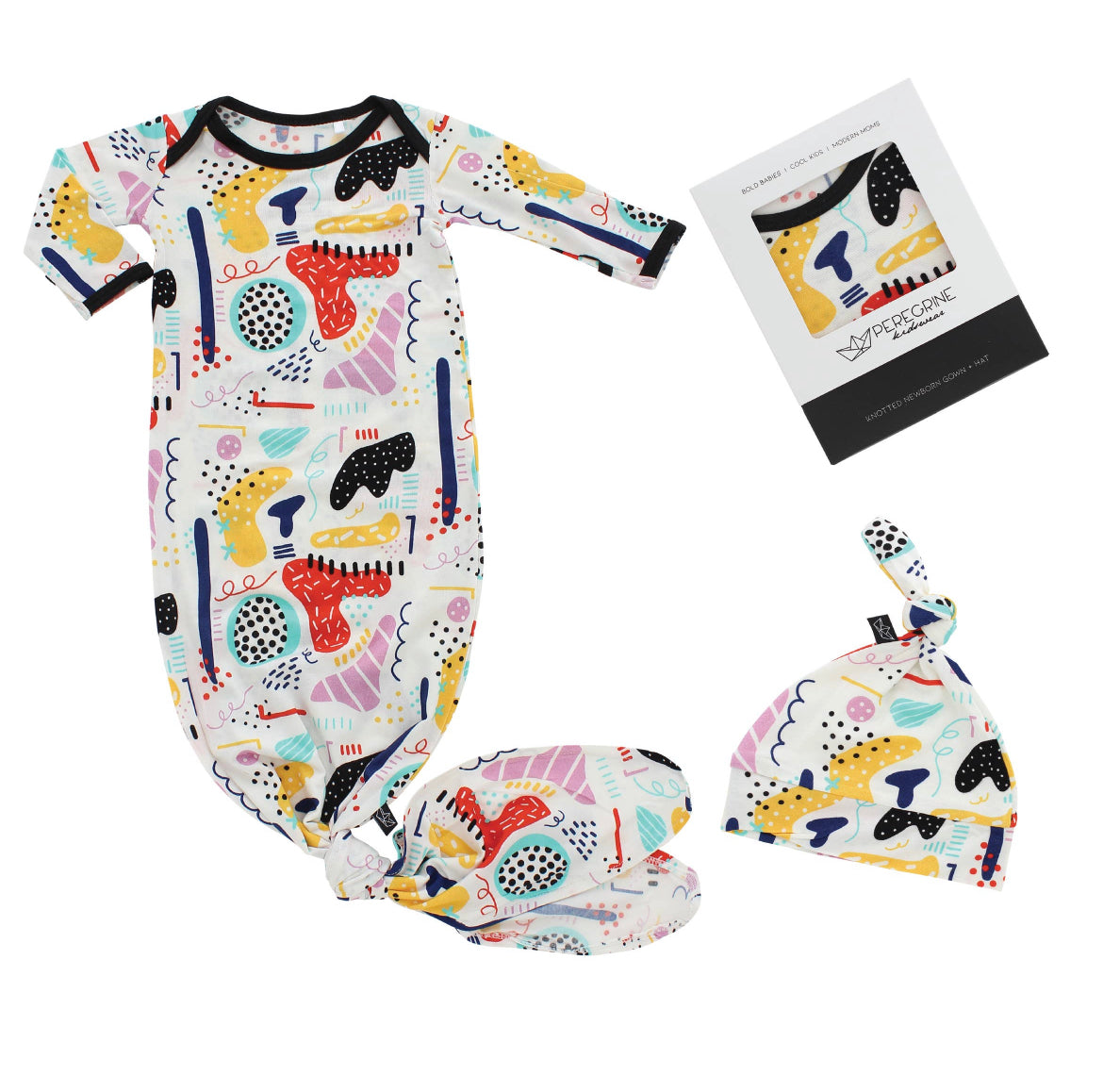 Peregrine Kidswear Modern Art Bamboo Newborn Gown + Hat set