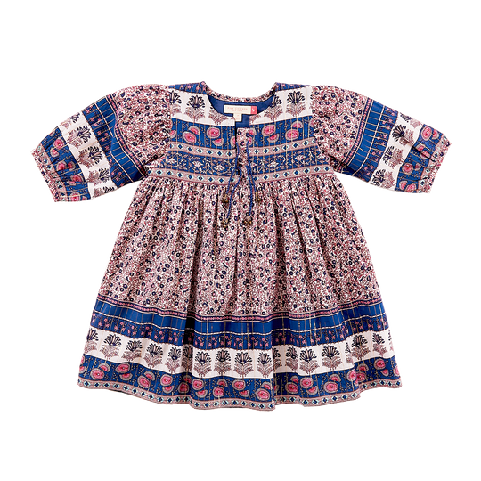 Beautifully boho! Graphic block prints stand out against a delicate floral motif on our Girls' Jade Dress, designed with a slit detail on front and gathered long sleeves. Crafted in cotton gauze with a hint of shimmer. Pairs perfectly with the Baby Jade Bubble Romper and Women's Jade Dress for a coordinated Mother/Daughter ensemble.