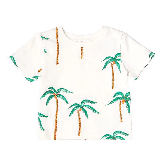 Pink Chicken Kids Organic Tee - Cream Palm Trees