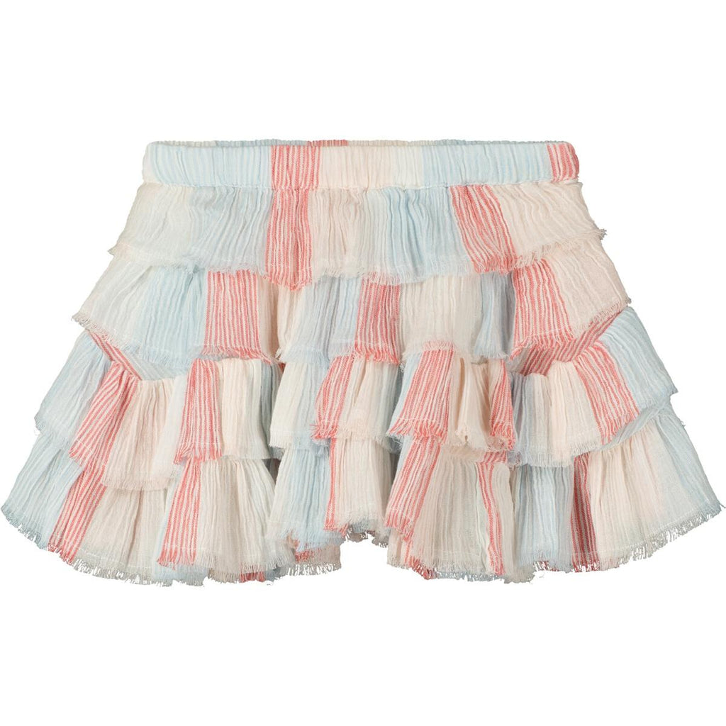 Raw edges are a very modern twist on this fun ra ra skirt. Featuring our beautiful pink and blue Mousehole gauze fabric and with an elasticated waist for comfort.