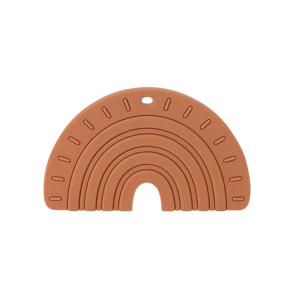 Let your little one enjoy a rainbow of happiness with their Rainbow + Rays || Teether. Designed with raised texture on the front and back, this teether will provide some much needed teething pain relief while looking simple and stylish.