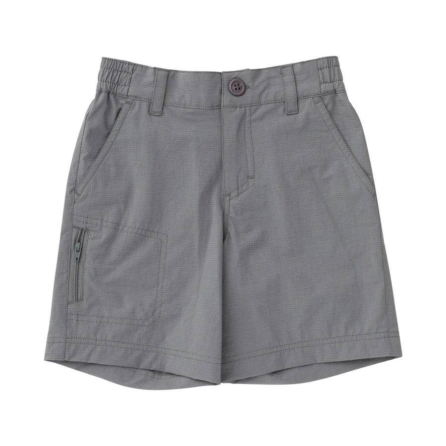 Our Flats Fishing Ripstop Short is a lean and clean, comfort stretch fishing short. Youth anglers will enjoy baiting, casting, and boating in this lightweight performance short. Fabric is fast drying, ripstop, and pill resistant, allowing boys to be boys. Available in Colors Gray and Khaki in sizes 6 Month - Youth 12 for toddlers and boys.