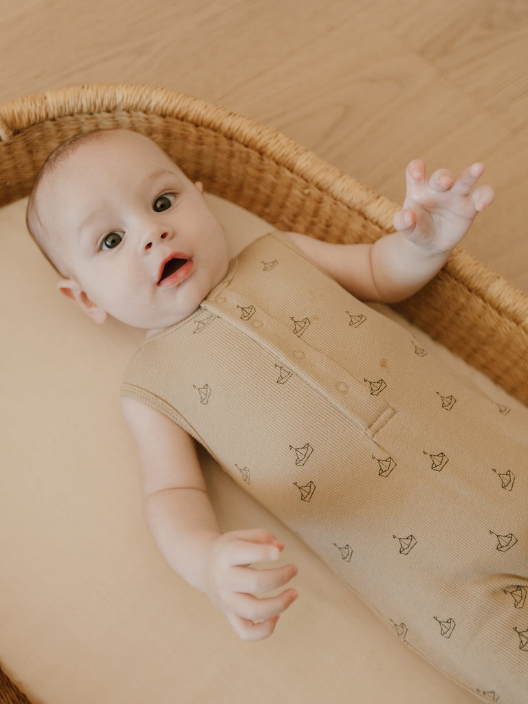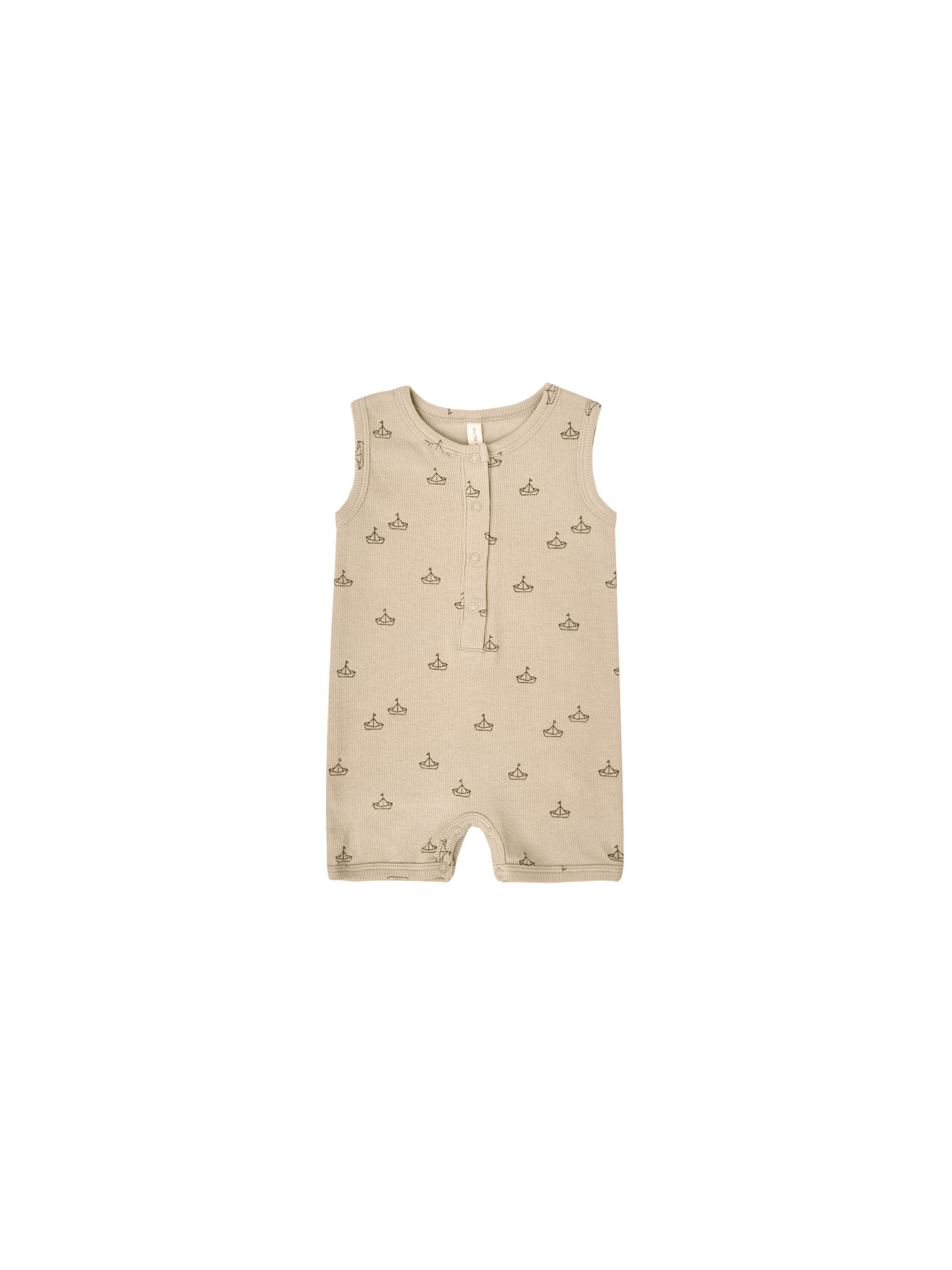 Our sleeveless ribbed jumpsuit is lightweight and soft with buttons down the chest and inseam for easy changing.