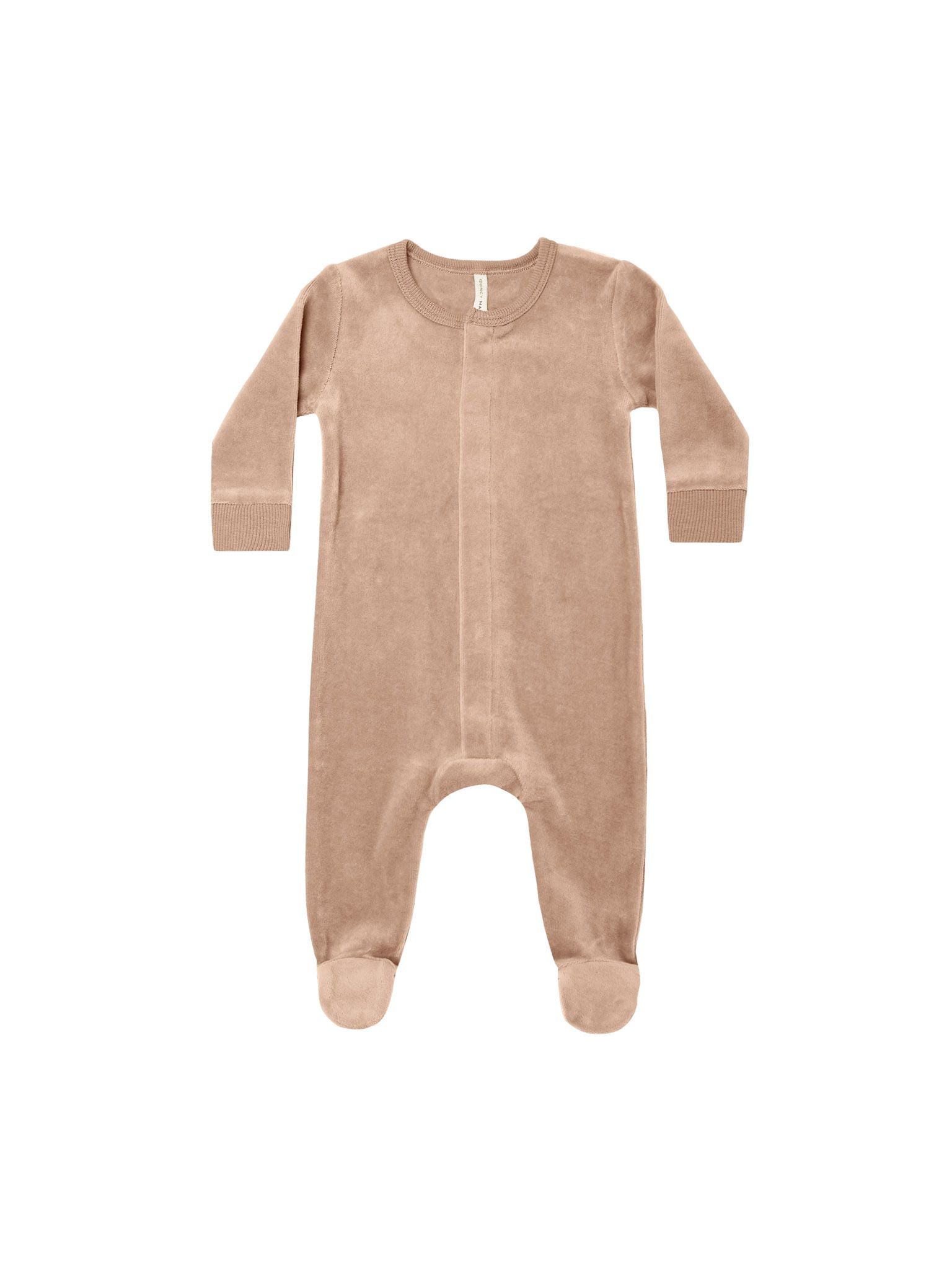 Quincy Mae Velour Hidden Snap Footie | Blush