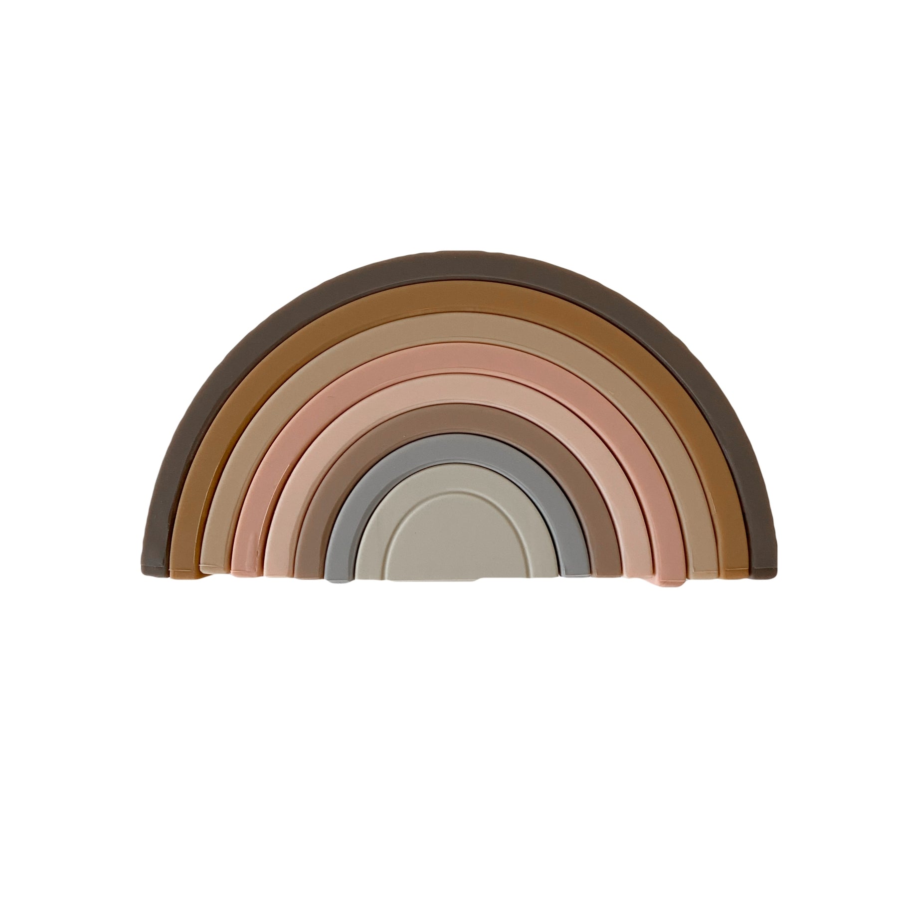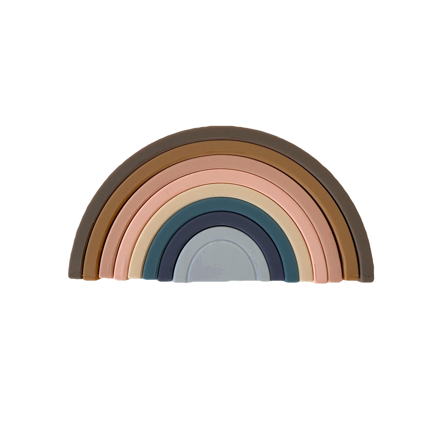 The Silicone Rainbow Teething Stacker is the ultimate multi-purpose toy. Teething + Play! Your baby will quickly discover how the stacking arches make the best soothing teethers!
