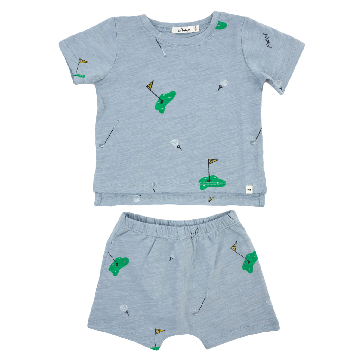 Raw Edge Tee and Shorts Set - Golf Print - Fog