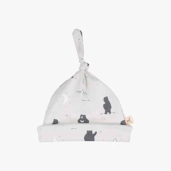 Warm and soft beanies with a decorative knot on the top. These match perfectly with our jumpsuits, onesies, pants, and t-shirts.