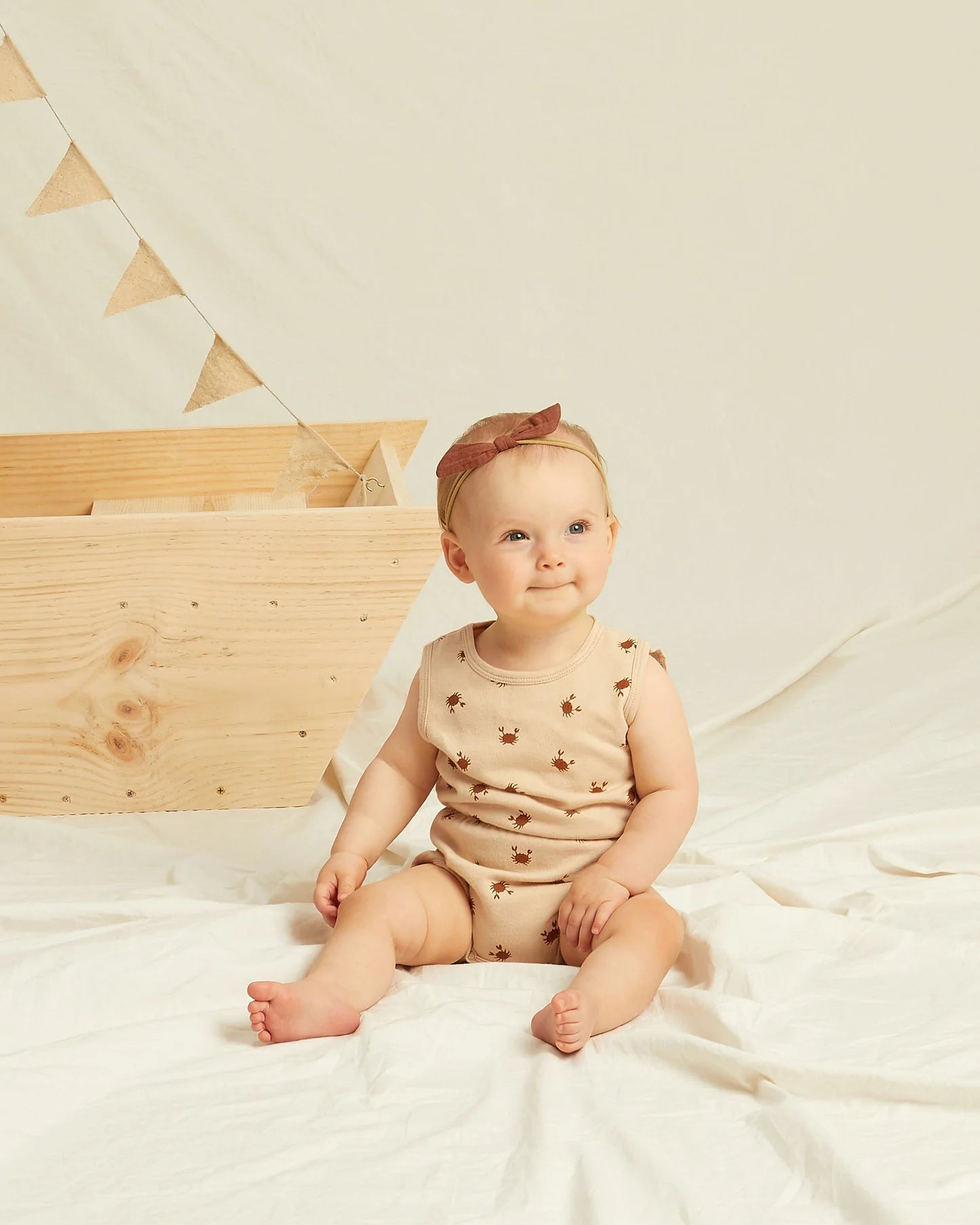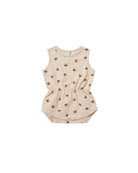 French terry playsuit with elasticized waist and snaps at bottom opening and back neck for ease of changing.