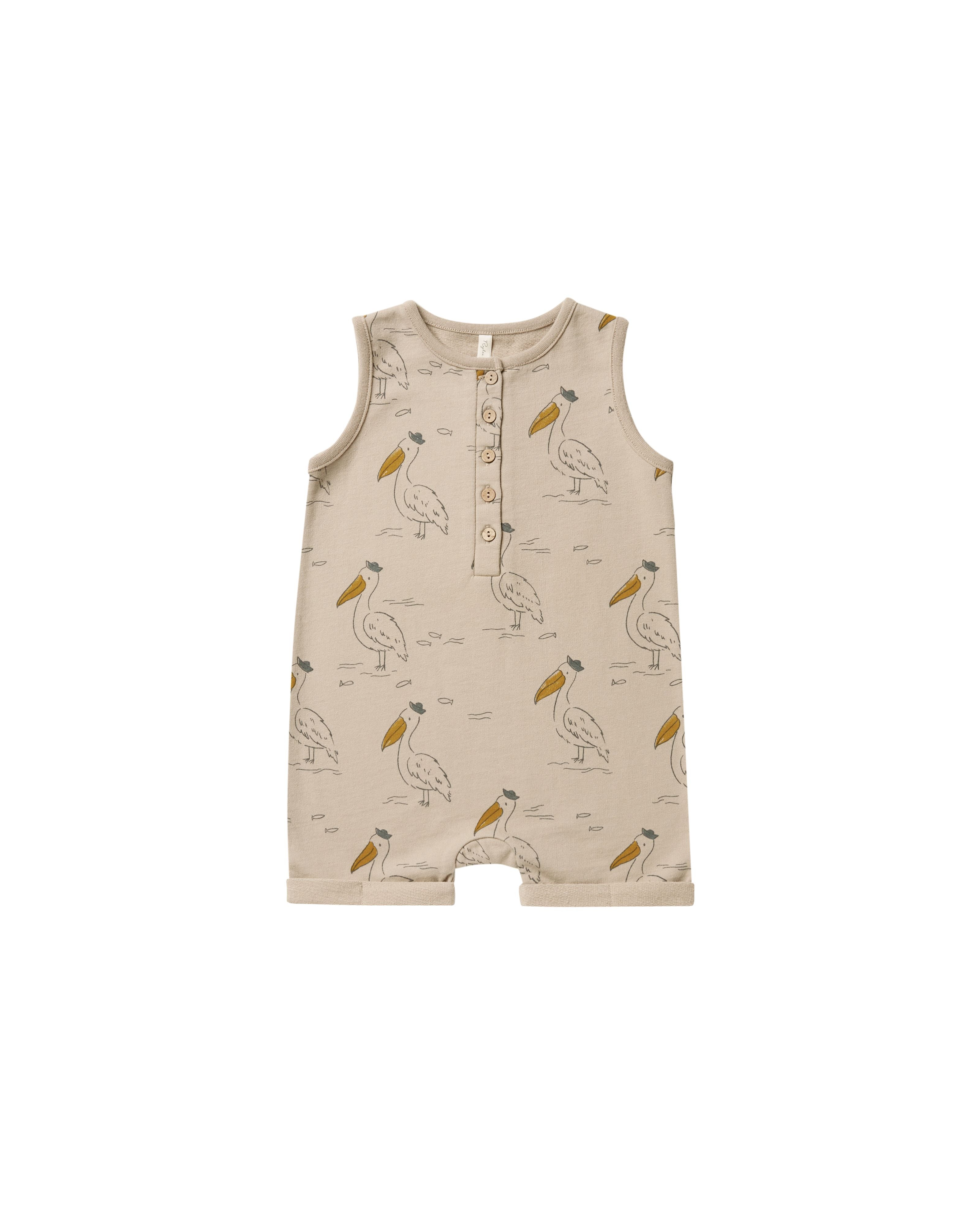 Featuring our ‘pelicans’ all-over print on warm grey.