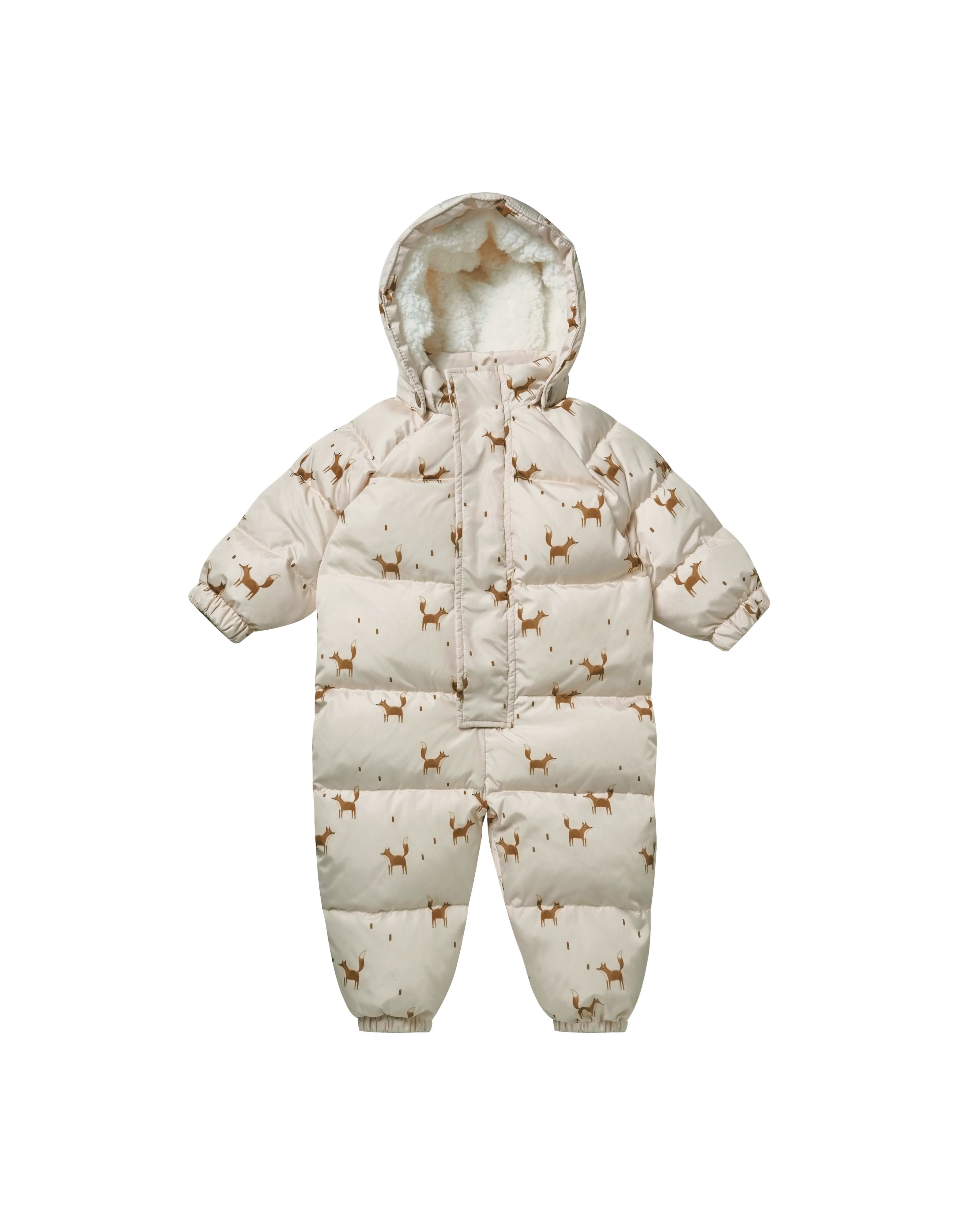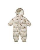 Our snowsuit will keep your little one cozy and cute this winter. Rubber grip dots on the back side for all their sledding adventures.