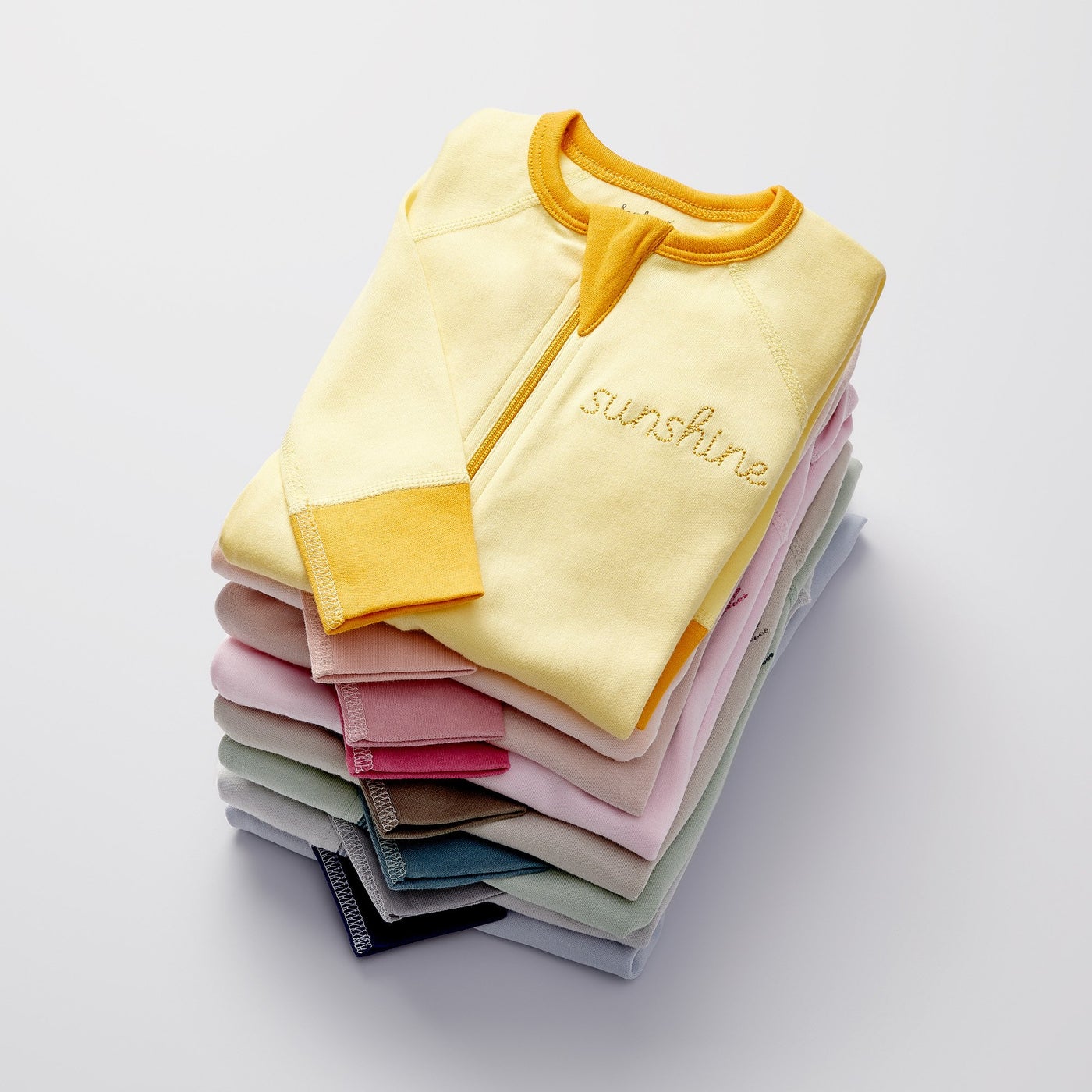 Our all new embroidered heart rompers are beautifully soft and feature an embroidered word on the front and our signature heart on the back. Featuring our convenient 2-way zip, and 100% organic.