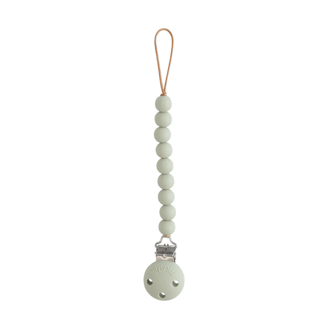 The Mushie silicone pacifier clip offers durability, function and simplicity to families on-the-go. Made from 100% food-grade silicone, our clip features a silicone clasp that brings a modern take to a traditional favorite. With a single color stack of silicone beads, the Hera clip offers families a beautiful accessory in a minimalist design. The clip is easy to clean and helps keep soothing items in reach for little ones.