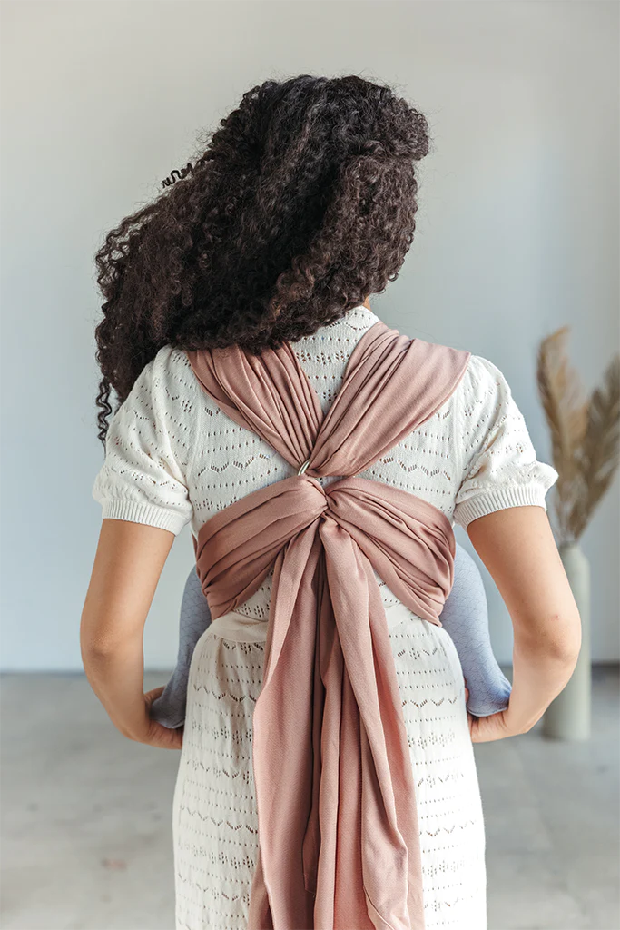 The Loop is inspired by the short front cross carrying style but features a sewn-in ring design,which makes it easy to use and simple to adjust. The Loop beautifully blends the ease of a sling with the support of a wrap.
