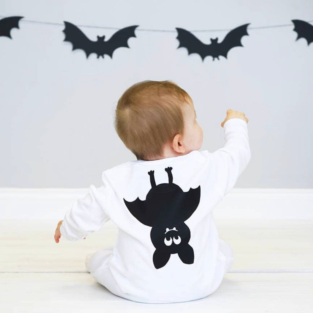 Our gorgeously soft sleepsuits feature our cute bat hanging design making them perfect for halloween. They make a great gift for your new baby, nephew, niece, godson, god daughter or grandchild for their birthday, Christmas, a baby shower, Christening or birth! They make the perfect little halloween outfit!