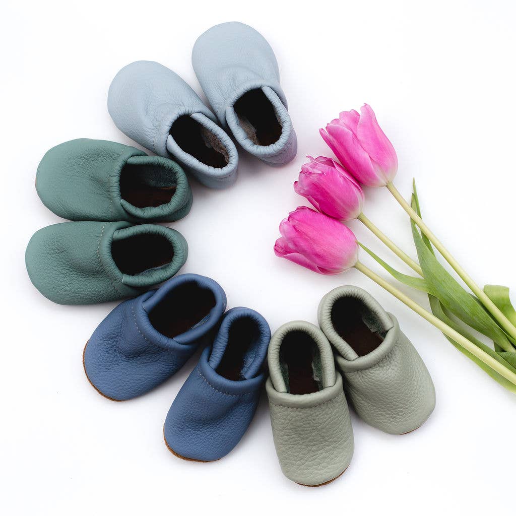 Starry Knight Design shoes are handmade in Montana USA by a team of local women with high-quality 100% leather and suede. Since 2008, We have been designing and making soft soled leather shoes for your tiny babies up to kids. Our Shoes are great for ages newborn to 4years: