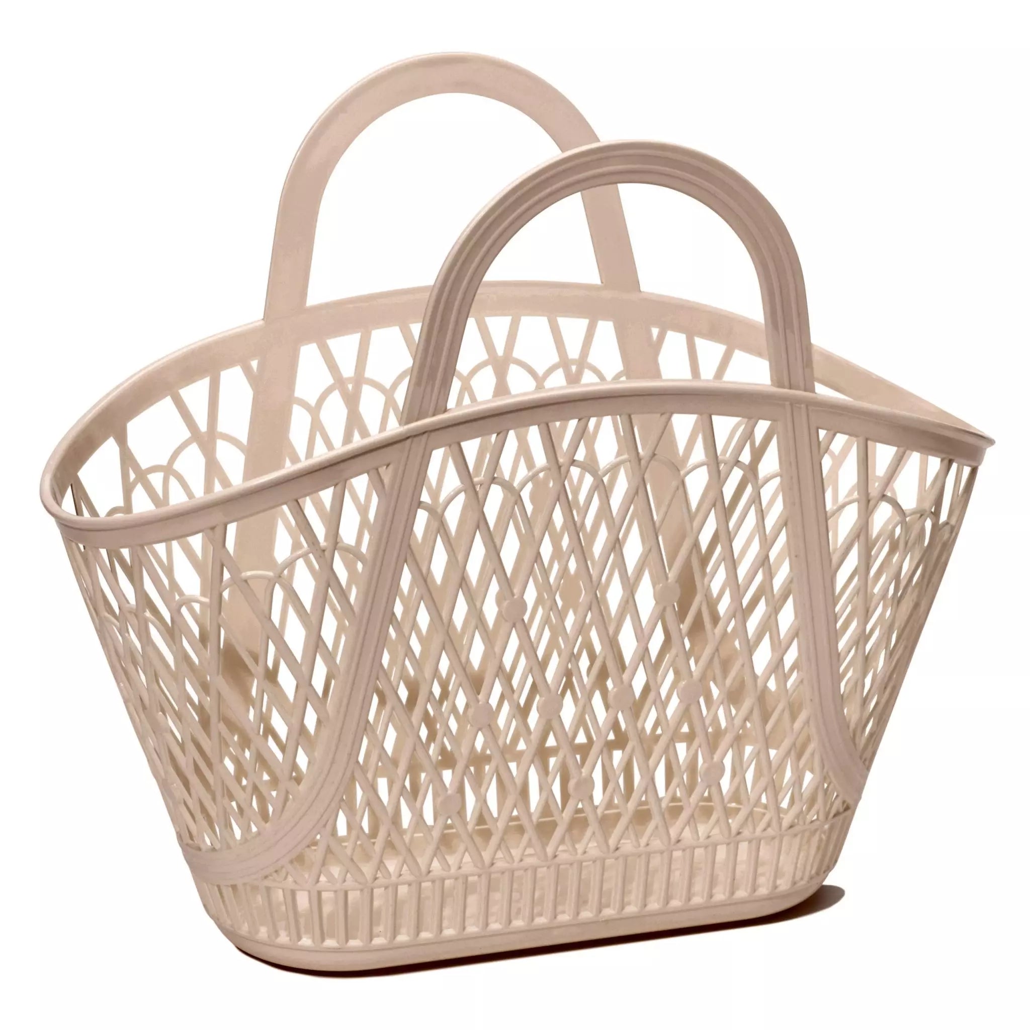 Our Betty Basket is a real head-turner with it’s pretty cross hatch design and large open handles. Perfect to carry on a stroll along the beachfront or pack it with a towel, a book and drink and head to the park to lay in the sunshine.