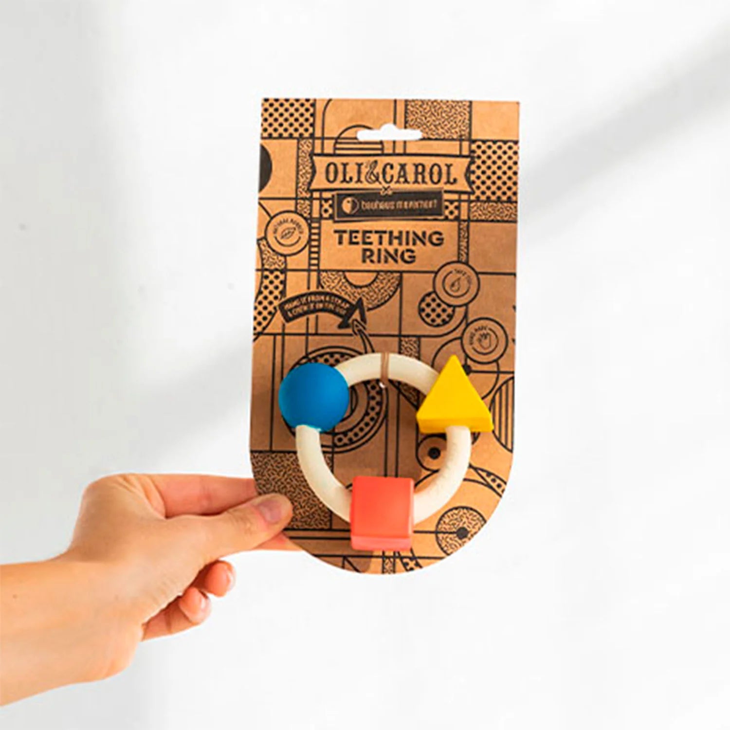 The Bauhaus Teething Ring is a design driven natural rubber toy that easy to grasp and teeth on.