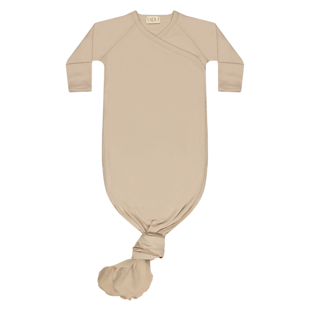 The kimono gown is designed with an overlap top and snap buttons from top to bottom for easy changing. This comfy long sleeve gown has an adjustable tie bottom and fold-over hand mittens to prevent scratching.