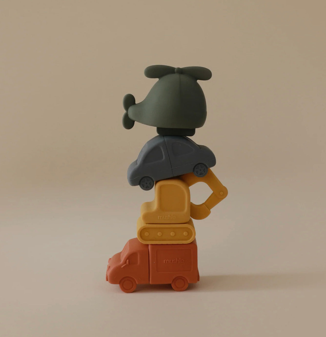 Let your child's imagination travel far and wide with the vehicles bath play set that includes a helicopter, car, truck and excavator. Made from 100% food grade silicone, the soft material is easy for little hands to hold while wet or dry. Its inventive design allows each toy to open into two separate pieces for thorough cleaning and fast drying. This feature allows the toys to remain mold-free with its easy-to-clean pieces that are dishwasher safe. After each use, we recommend opening the pieces to rinse out and air dry before storing.