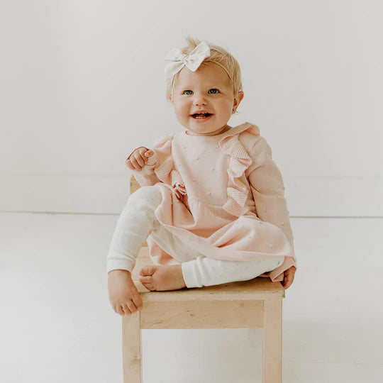 Long sleeves A-line design dress with fun ruffles & bobbles all over.