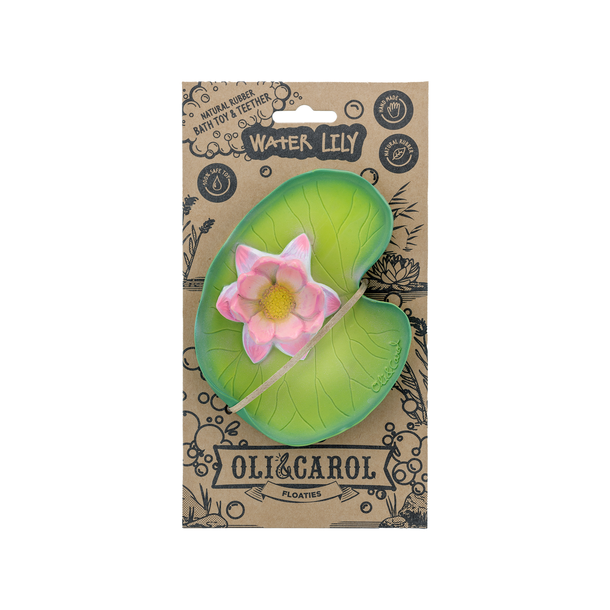 WATER LILY is a natural rubber baby toy for teething, bath time, and sensory play. Hand painted with natural pigments for safe and worry-free play!